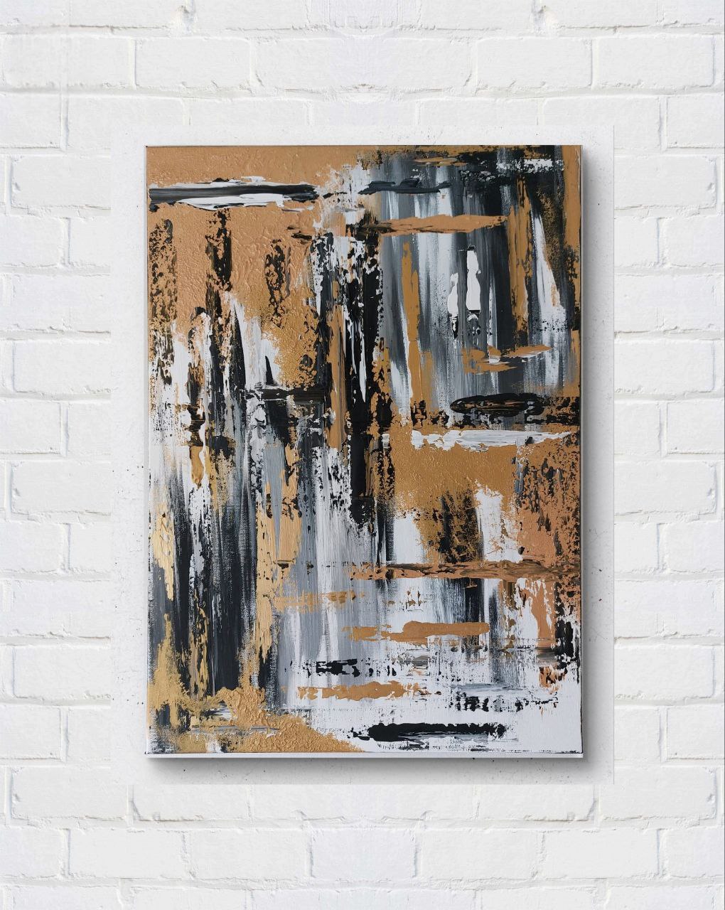 Farben: gold, silber, schwarz, weiß - Leinwand weiß